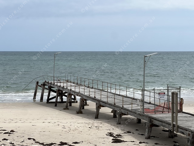 The collapsed and closed Normanville Jetty on Thursday, September 25 – the same day the District Council of Yankalilla announced repairs were set to begin shortly. (Dani Brown: 506474_01)