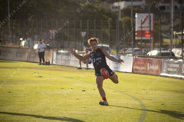 Jacob Newton kicks down the wing for Norwood. (Mitchell Paterson: 476426_15)