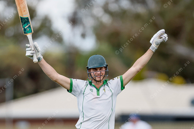 Willem Schluter-Prouse celebrates after hitting a six to win the game for Greenock. (516250_06)