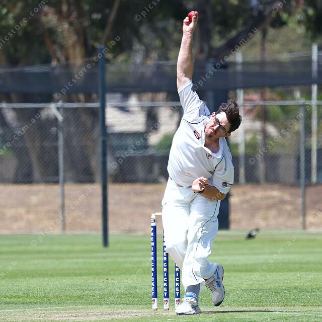 Cooper Thompson bowling his right-arm pace over-the-wicket. (516335_07)