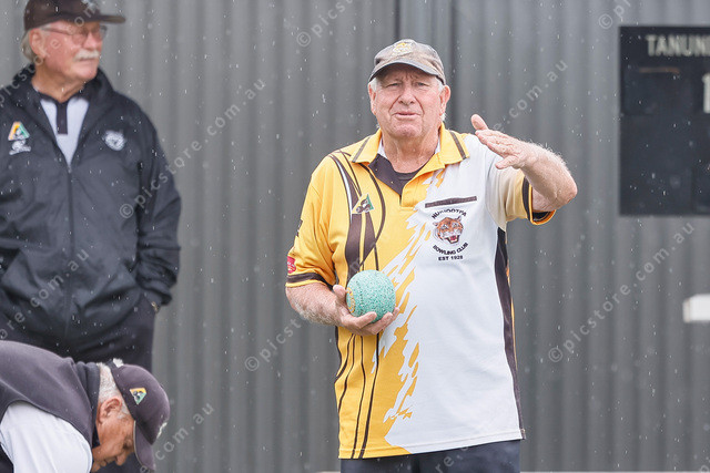 Roger Mattschoss communicating with his skipper before his shot. (518079_03)