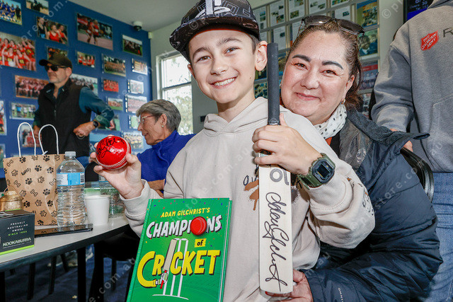 Jax and Hayley Byford with Jax’s auction winnings after bidding $1000 for the items. (517855_30)