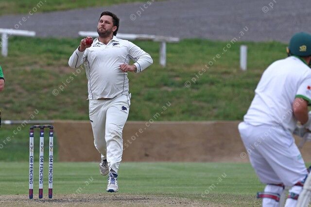 Willaston’s Hayden Moss trots in for his run-up. (Michael Slattery: 519725_06)