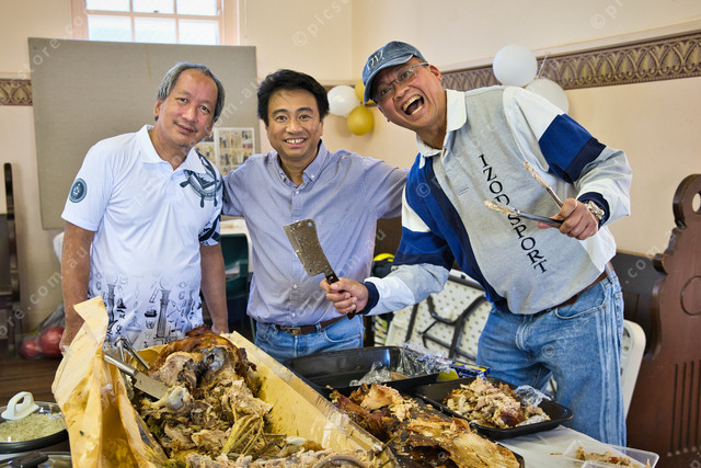 Julius Santos, Edwin Cedamon and Arnold Labares preparing the pig on the spit. (519549_25)