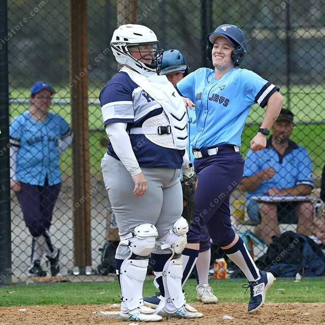 Britt Perry crosses home plate for a Bluejays run. (519798_07)