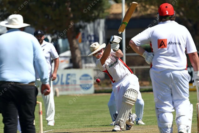 Kapunda’s Jack Ryan whacks a drive straight back towards the umpire. (514797_09)