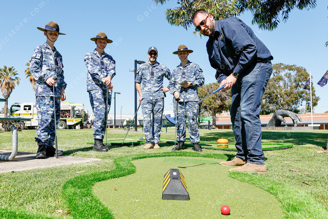 CDT Oliver Pryde, LCDT Alex Klaebe, FLTLT (AAFC) Brett Tassell, CCPL Aden Hogan-Jones and Anthony Barilla of Gawler Rotary. (514588_04)
