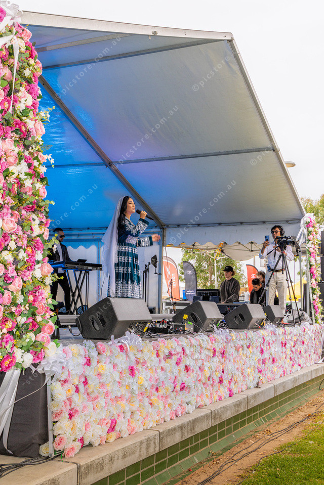 One of the performers on the stage.