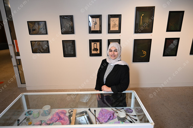 Nur Terzi is hosting an exhibition of Turkish Ebru marbling, illumination, and calligraphy. Photo by Damjan Janevski. 472925_03