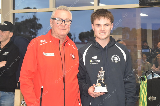 North Adelaide director Malcolm Ellis with Northern Areas best under 21, Bodhi Sims. (483103)