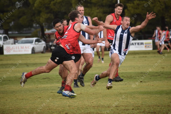 Yorke Peninsula’s Angus Glazbrook handballs away from the contest. (483102)