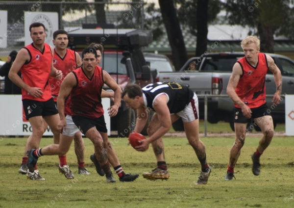 Adelaide Plains coach Dylan Wise picks up the ball. (483102)