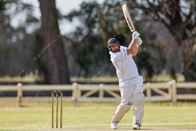 Mallala’s Anthony Bascombe goes high and long for one of his six sixes. (509864_08)