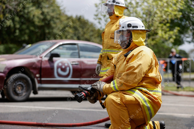 Lyndoch CFS members on the ready as the kitchen fire demonstration takes place. (509897_07)