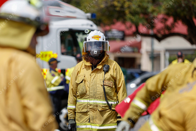 CFS Captain Shane Emms explains the procedures used in the road crash demonstration for the onlooking crowd. (509897_18)