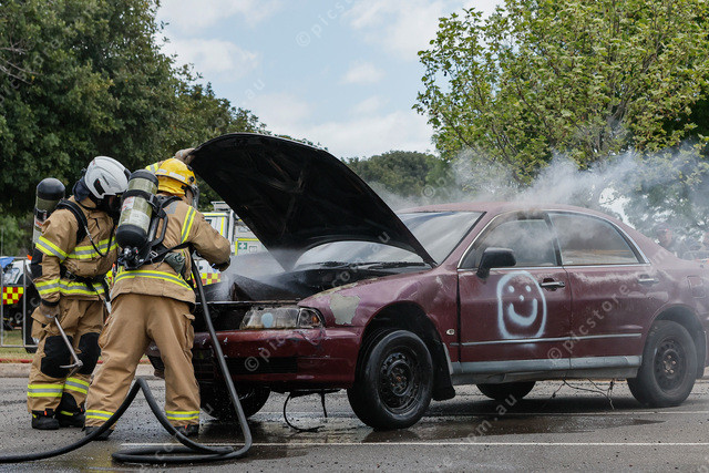 The Lyndoch CFS performs a car fire demonstration. (509897_23)