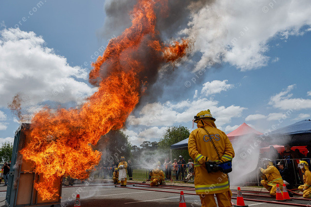 The flames climb during the Lyndoch CFS kitchen fire demonstration on Saturday afternoon. (509897_40)