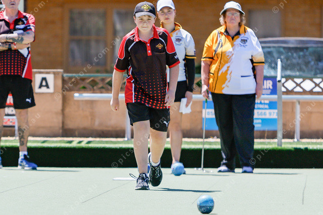 Kapunda’s young state star Jayden Green follows his shot down the green. (Mark Willoughby: 511479_03)