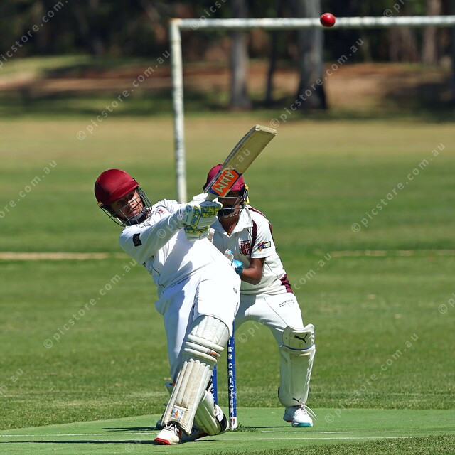 Gurshaan Singh Sidhu launches a high slog over the leg-side. (511576_02)