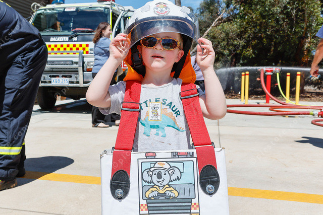 Nicholas trying on a firefighter helmet at Saturday’s Dalkeith CFS demo. (511362_12)