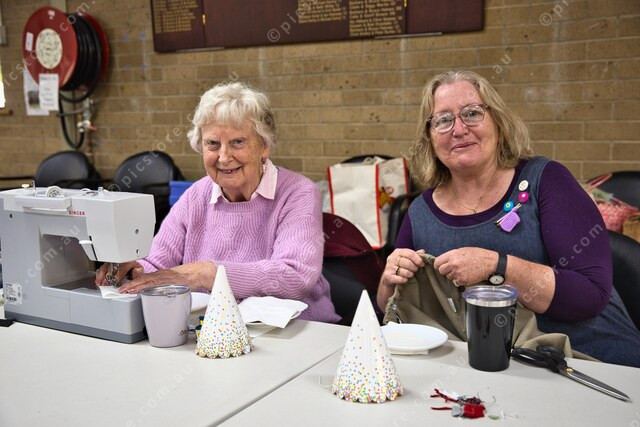 Barbara Anderson and Helen Hennessy repairing clothes. (511445_05)