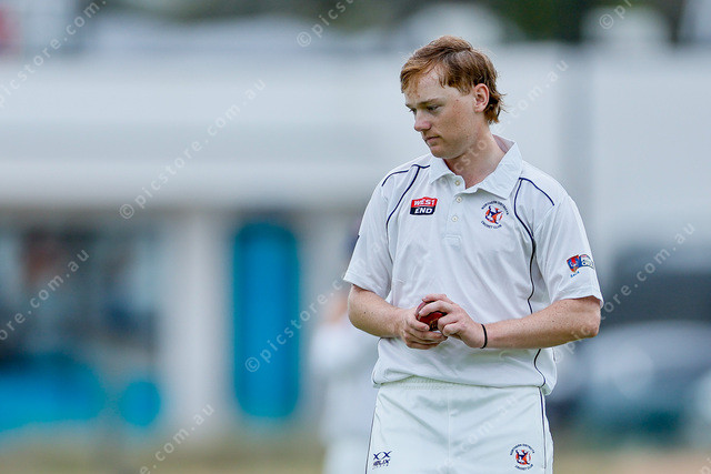 Northern Districts’ Kyle Butler walks back to his mark and plans his next ball. (512996_04)