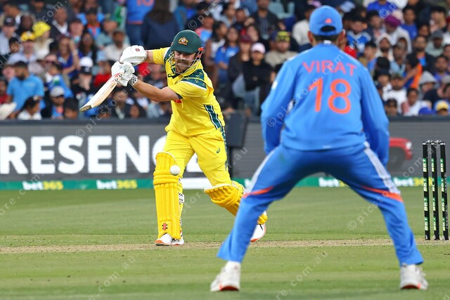 Head rolls a drive to Indian legend Virat Kohli at short cover. (513185_05)
