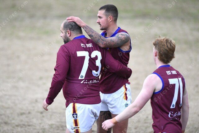 Matthew Vaiano (73 Pakenham) kicks a goal. Hand on his head from Sam Cachia (15). 489626_03