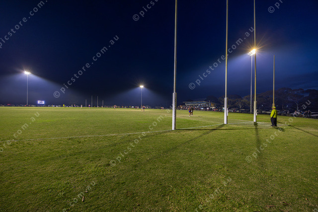 View of the ground under lights.