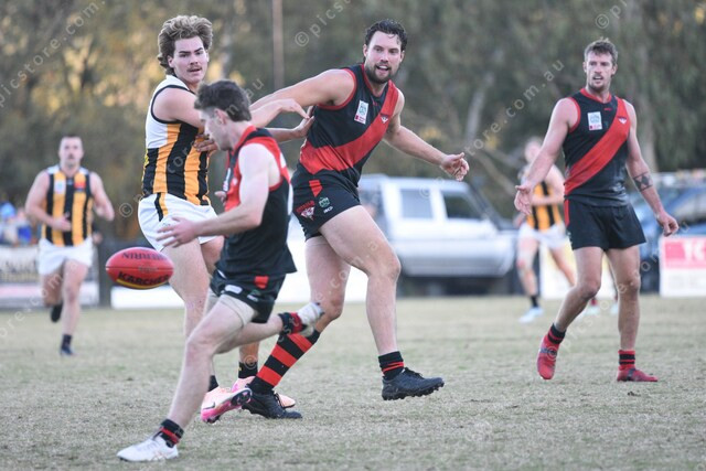 Steven Kapahnke (26 Emerald, middle) watches teammate Wil Gazzard (25 left). 481282_09