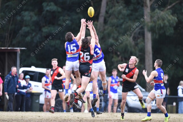 From left, Hunter Coghlan (15 Wandin), Steven Kapahnke (26 Emerald), Thomas Leech-hines (53 Wandin). 489625_13