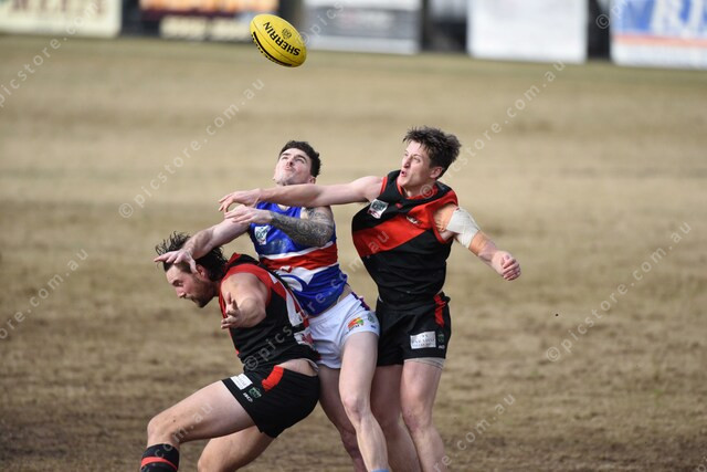 From left, Steven Kapahnke (26 Emerald), Aaron Mullett (3 Wandin), Patrick Mckimmie (10 Wandin). 489625_27