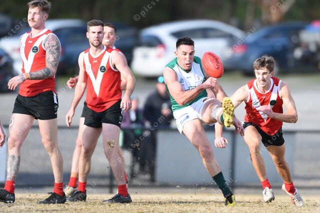 Michael Firrito (4 Gembrook Cockatoo) tries for another 3rd quater goal but misses. 497915_15