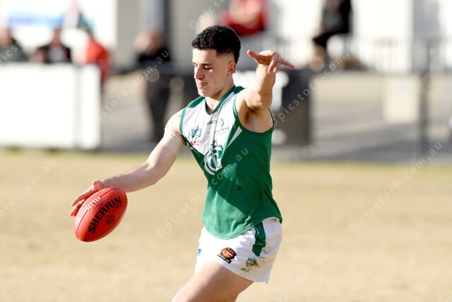 Joseph Verna (43 Gembrook Cockatoo) kicks a 4th quater goal. 497915_31