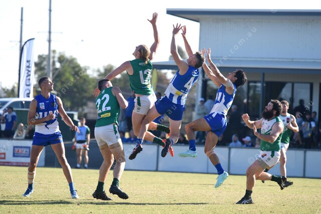 From left, Zachariah Shelton (23 Gembrook Cockatoo), Benjamin Schultze (12 Gembrook Cockatoo), Mark Seedsman (4 Officer), Antonio Quach (24 Officer). 476845_13