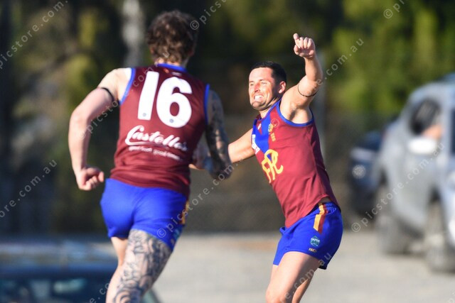 Tanner Stanton (3 Pakenham) kicks a goal in the final quarter. Teammate Benjamin Green (16). 495024_37