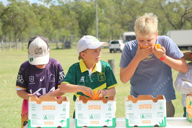 Zac Baker (right) tore into his crate of mandarins straight away, employing a fierce technique that left his opponents in the dust. 476320_11