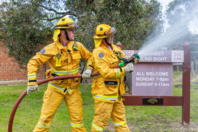 Water On! Firefighters finish the simulation successfully extinguishing the fire that was meant to be in a house.