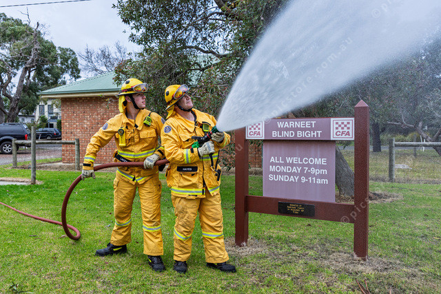 Water On! Firefighters finish the simulation successfully extinguishing the fire that was meant to be in a house.