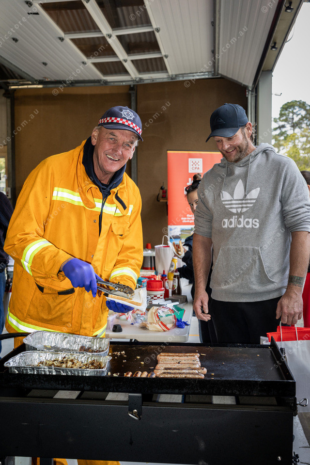 L-R Hans De Kraker (Master Chef) and Jason Watt (from Blind Bight) getting a snag.
