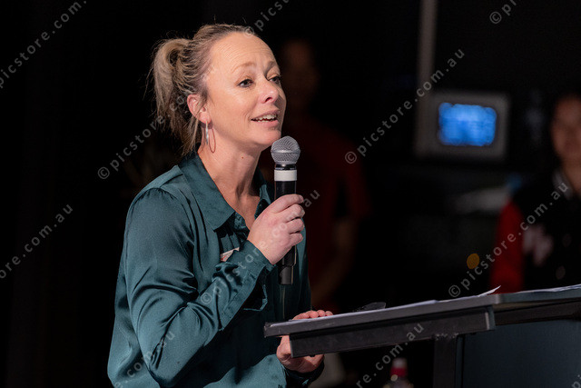 Photo: Kelly Krieg Assistant Principal speaking on stage.