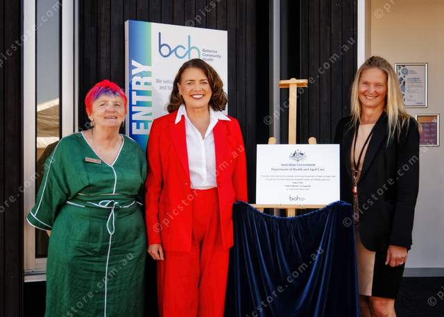 Fay Agterhuis (Chair of BCH), Libby Coker (Federal member for Corangamite) and Kathy Russell (CEO BCH) (Ivan Kemp) 462427_02