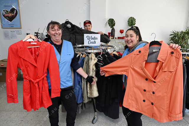 Helping Hands Op Shop. Pic of staff Kylie Reid, Adam Burns and Natasha Barbas. Photo by Damjan Janevski. 487949_02