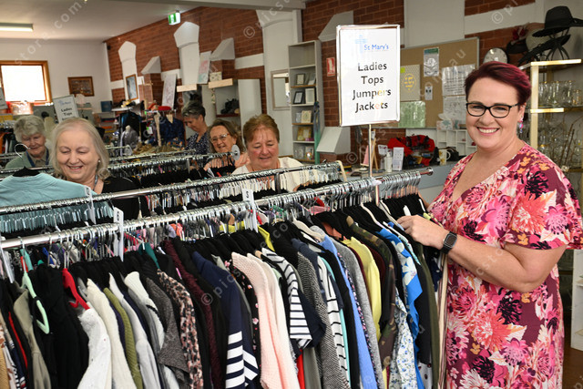 St Mary’s Op Shop, Sunbury, volunteer callout. Pic of operations manager Narelle Riley (front) with volunteers: Elaine, Sharryne, Lois, Anne and Kaylene (they want just first names published). (Damjan Janevski). 510158_01