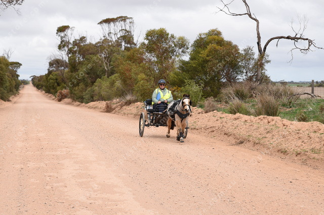 Deb XXX and pony XXXX trotting along Old Mallala Road. (488817)