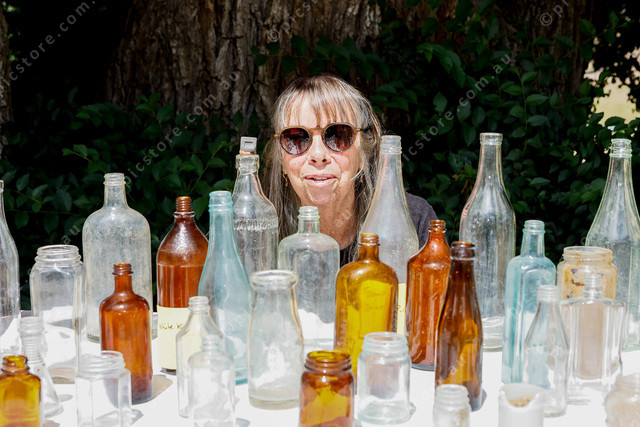 Cathy Young with bottles retrieved from the old ‘Rese camp’. (521296_10)