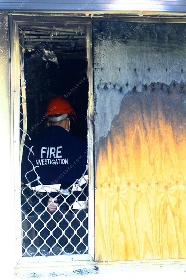 INVESTIGATOR: A Fire investigator examines the inside house gutted by fire in Parke Crescent. (PIC: PHIL WILLIAMS 484250_05)