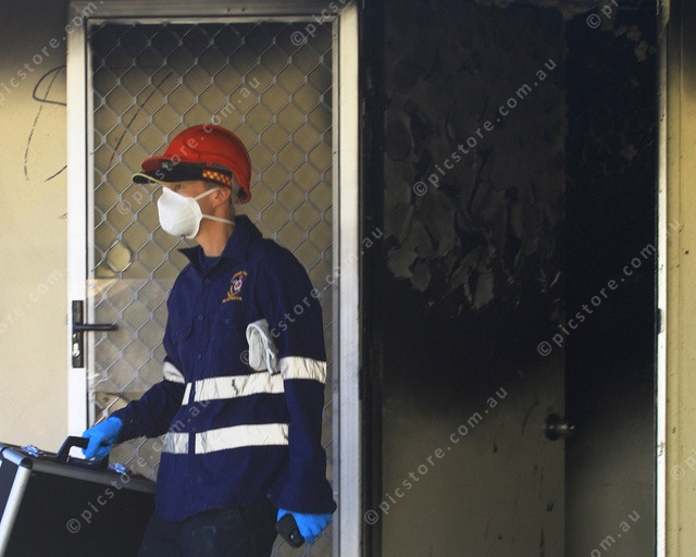 CLUES: A fire investigator searching for clues to a house fire in Parke Crescent. (PIC: PHIL WILLIAMS 484250_07)