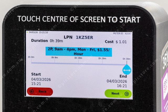 A new parking meter will only show price per hour after you put your registration number in. This Rego Number is fake just to see prices.