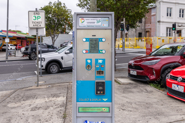 Old parking meter Mason St Car Park. Opposite the new meter at $1:05 per hour this also takes cash but not 5cent coins.